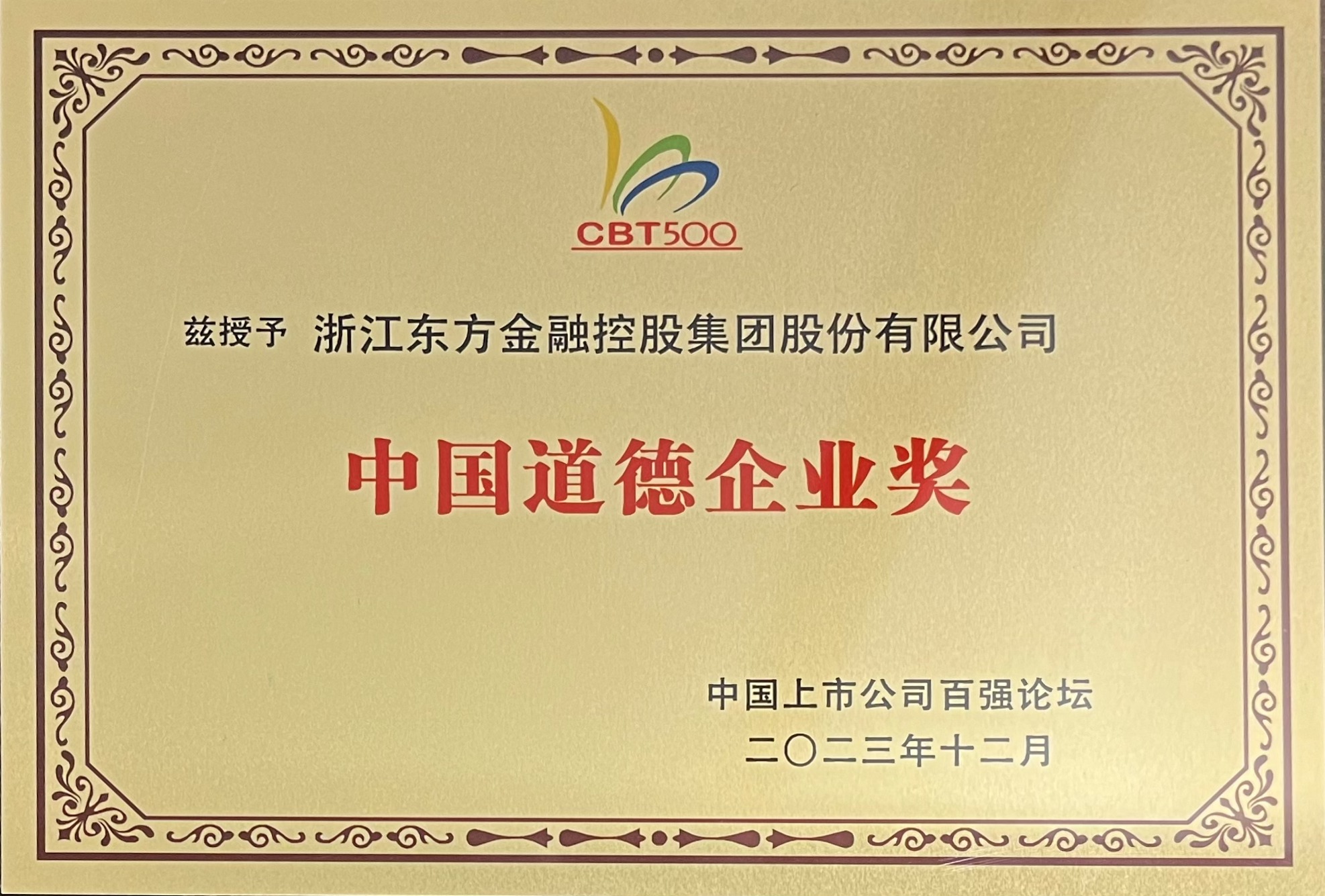 中國道德企業獎由論壇組委會授予積極回饋股東和社會、重視環境保護、最具社會責任的上市公司。浙江東方作為國有上市金控平臺,始終心懷“國之大者”,堅守金融報國初心,勇擔金融為民使命,以高水平的綜合金融服務賦能實體經濟高質量發展。公司堅持黨建引領,深化國企改革,不斷提升公司治理水平,以高質量發展成果回饋股東。公司助力綠色低碳發展,積極發揮綜合金融優勢,形成清潔能源、生態治理、綠色農業、綠色基建、綠色制造等綠色經營布局。公司推進普惠金融走深走實,通過結對幫扶服務鄉村振興,落地慈善信托,縱深推進“保險+期貨”,開展公益贈險。此次公司獲得“中國道德企業獎”也表明市場和社會對公司的肯定和認可。