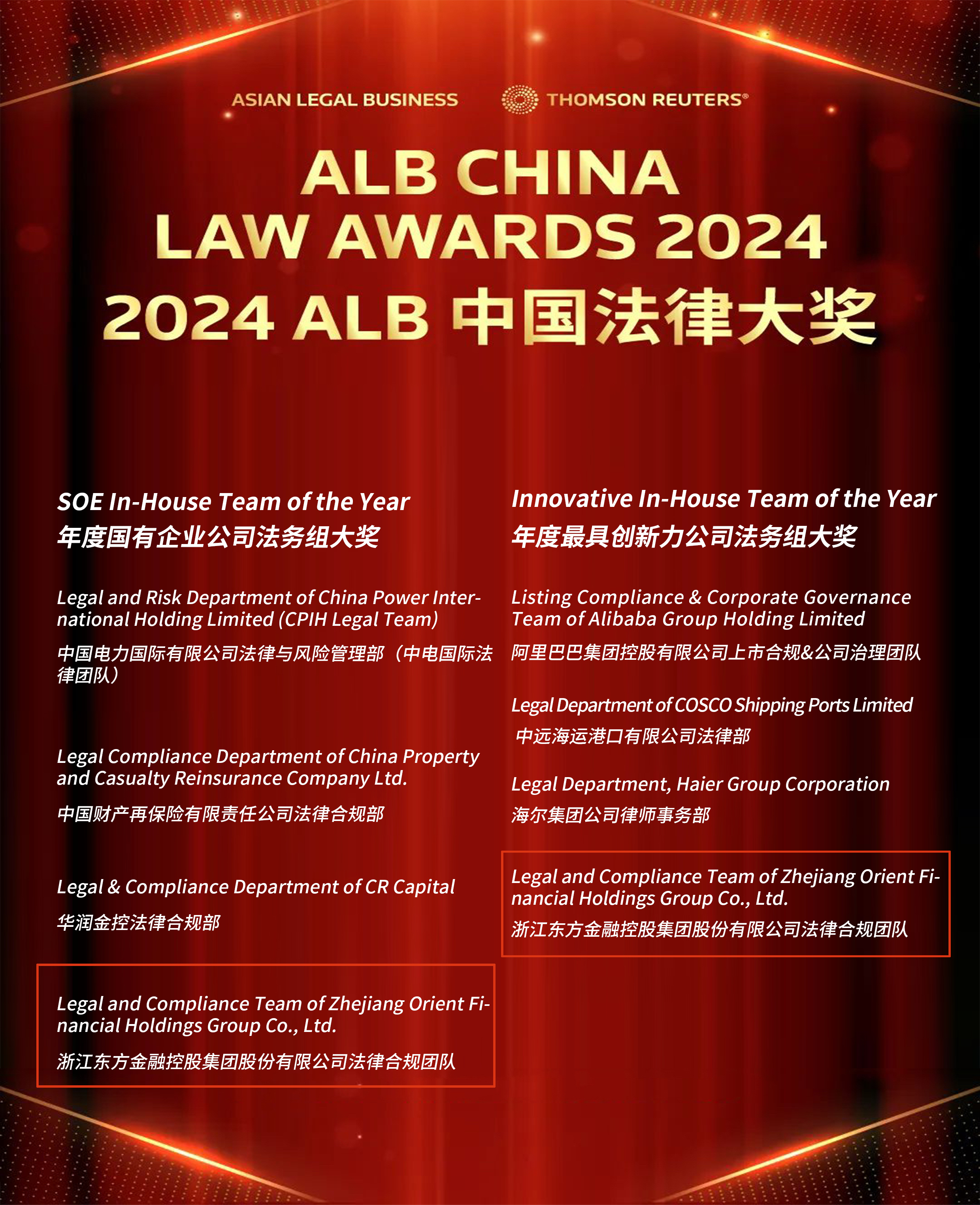 《亞洲法律雜志》(ALB)是湯森路透旗下的尖端法律雜志,是全球最具影響力的法律媒體之一。ALB中國法律大獎旨在表彰業界領先的律師事務所和優秀的企業法務團隊、杰出的法律專業人士以及上一年度突出的交易案例,致力于鼓勵更多的法律團隊及從業者在自己的領域做出杰出貢獻。2024年ALB中國法律大獎吸引了超過260家律師事務所以及企業法務團隊參與,共計1800余項提名,涉及四十余個獎項,提名創下新高。憑借強勁的實力和突出的成績,入圍者從上述競爭激烈的獎項角逐中脫穎而出,代表了中國法律業界一流水平。